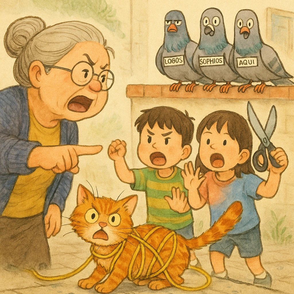 증조할아버지 비둘기 '소피오스'는 수염 같은 깃털을 쓰다듬으며 중얼거렸다.