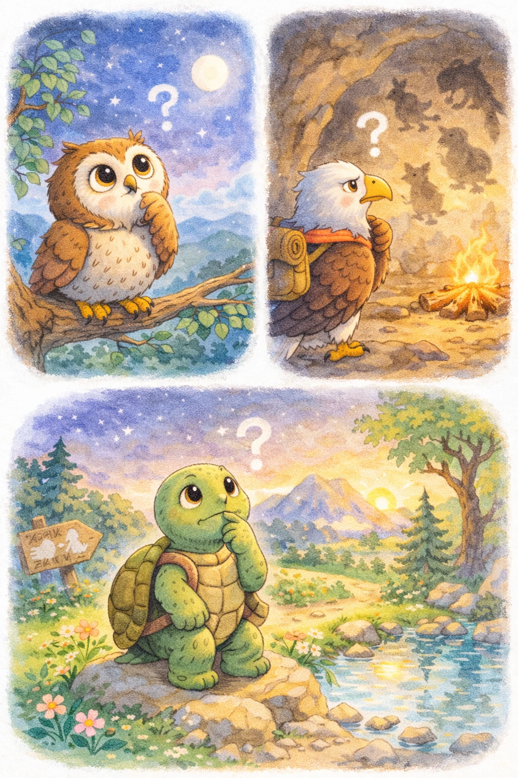 누구나 한 번쯤 품어보았지만 쉽게 말하지 못했던 질문들의 답을 찾기 위해, 세 동물이 산을 오릅니다.