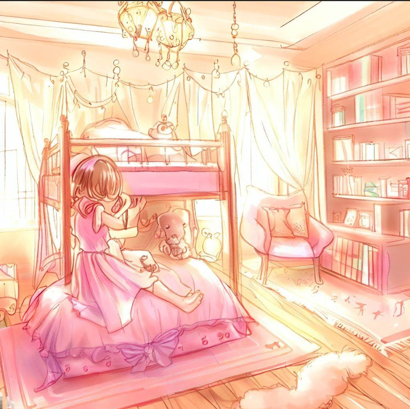 유진이의 방에는 2층 침대가 놓여 있어요. 천장에는 공주풍 캐노피가 예쁘게 늘어져 있어요. 핑크빛 이불에 샤방샤방 부드러운 천이 깔려있어 침대에 눕고 싶어요. 침대 밑은 계단으로 연결되어 있고 비밀 공간이 있어요. 그 안에는 예쁜 소파가 있고 재미있는 책이 공주 책장에 놓여 있어서 예쁜 조명이 켜지면 반짝반짝거려요. 이곳에서는 싫어하던 책도 읽을 수 있을 거 같아요.