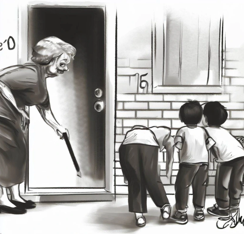 소란이는 용기를 내어 초인종을 눌렀어요. ‘위~잉’ 소리는 나는데 아무도 안 나오네요. 등이 오싹해져요. 기찬이가 용기를 내어 초인종을 다시 눌렀어요.‘위~잉’ 소리가 끊어졌어요. 흰머리를 단정히 올린 할머니가 나오시네요.