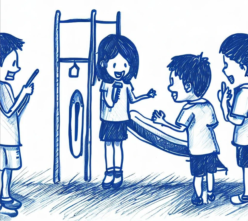 이제 학원에 가려면 아직 15분이 남았네요. 한 번이라도 놀이터에서 미끄럼틀을 타거나 그네를 타고 싶어요. 그런데 벤치에서 힘없이 앉아있는 경비 아저씨가 있네요.