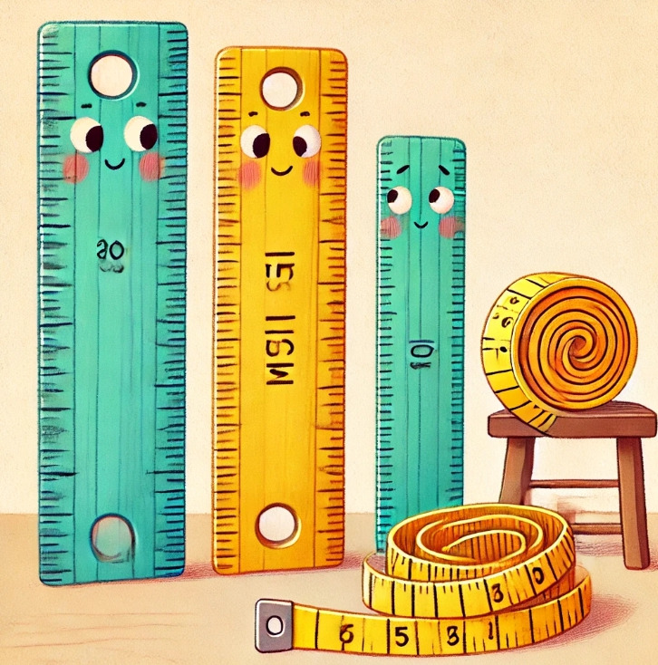 줄자는 처음으로 자신감을 느꼈어. "항상 말려 있어서 내 길이가 얼마나 되는지도 몰랐어 하지만 이제야 알겠어. 나는 길고 유연하게 쓸 수 있는 특별한 존재야! " 라며 환하게 몸을 펼쳤어.