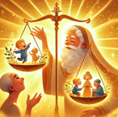 신은 부드럽게 웃으며 저울을 보여주었어요.