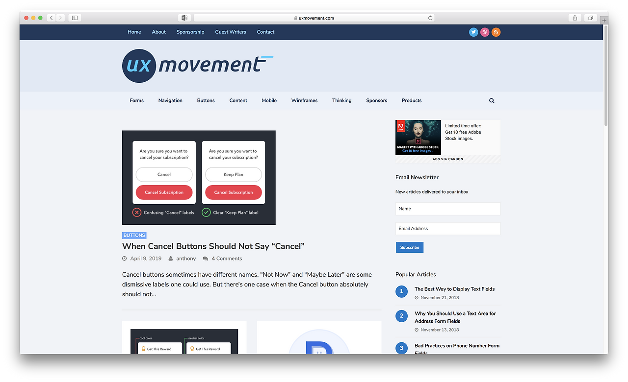 다양한 UX 관련 아티클을 접할 수 있는 사이트. Nielsen Norman Group이 실무 뿐 아니라 대학원에서 고민해볼 만한 주제까지 품고 있다면 여기서 소개하는 사례들은 철저히 실무에서 고민하는 사례들로 이루어져 있다. 예를 들자면 인풋 필드를 어떤 형태로 디자인해야 가장 사용성에 좋은가 같은 사례들이 디자인 이미지와 함께 소개되어 있어서, 화면 설계 하면서 고민하는 부분에 대한 근거를 찾기 좋다