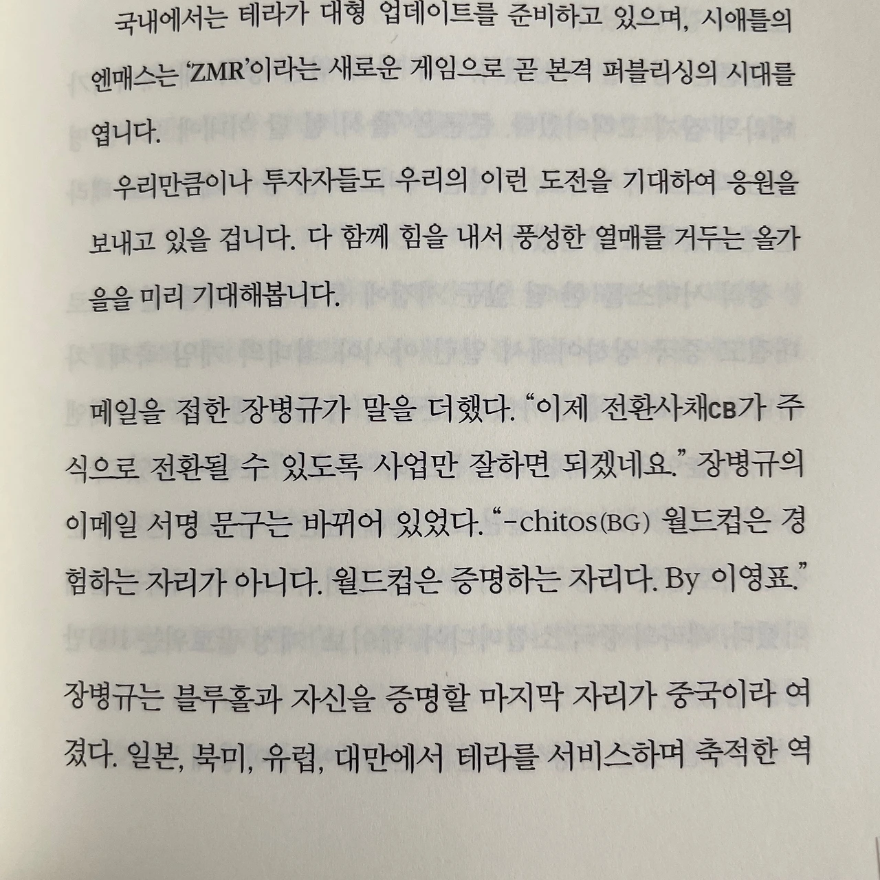 두 책 모두 창업가의 책이고, 단순히 경영서적이라고 모두 영감을 주는 것은 아니다. 공교롭게 실패담의 비중이 높고, 전체적으로는 비전을 강조하는 내용이 많다. 사실 켈리최 회장님의 생각은 책보다는 유튜브에서 더 많이 접한 것 같기도 하다.