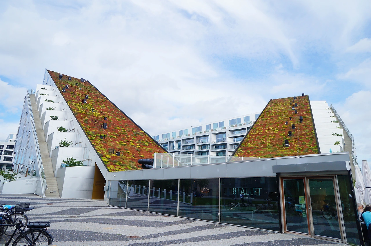 위에서 보면 8자로 생긴 건물 모양의 이름을 따 8house, 혹은 big house라고 불리는 복합 주거 단지. 외레브로라는 신도시 지역에 생긴 건물답게 우뚝 선 건물 옆으로는 호수와 초원이 드넓게 펼쳐져 있다.