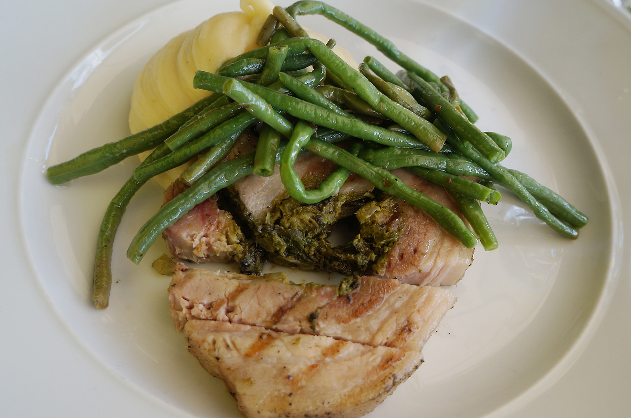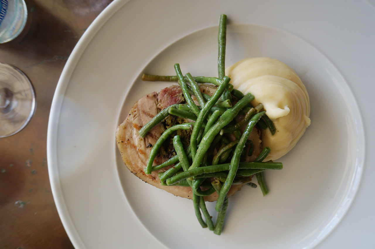 짭조름하게 구운 아스파라거스와 고소한 맛이 나는 소스(?)가 고기 안에 있다. 그리고 저 하얀색은 감자를 치즈와 함께 아주 잘게 으깬 것 같았다. 그래서 식감이 아~주 부드럽고 약간 느끼했다.