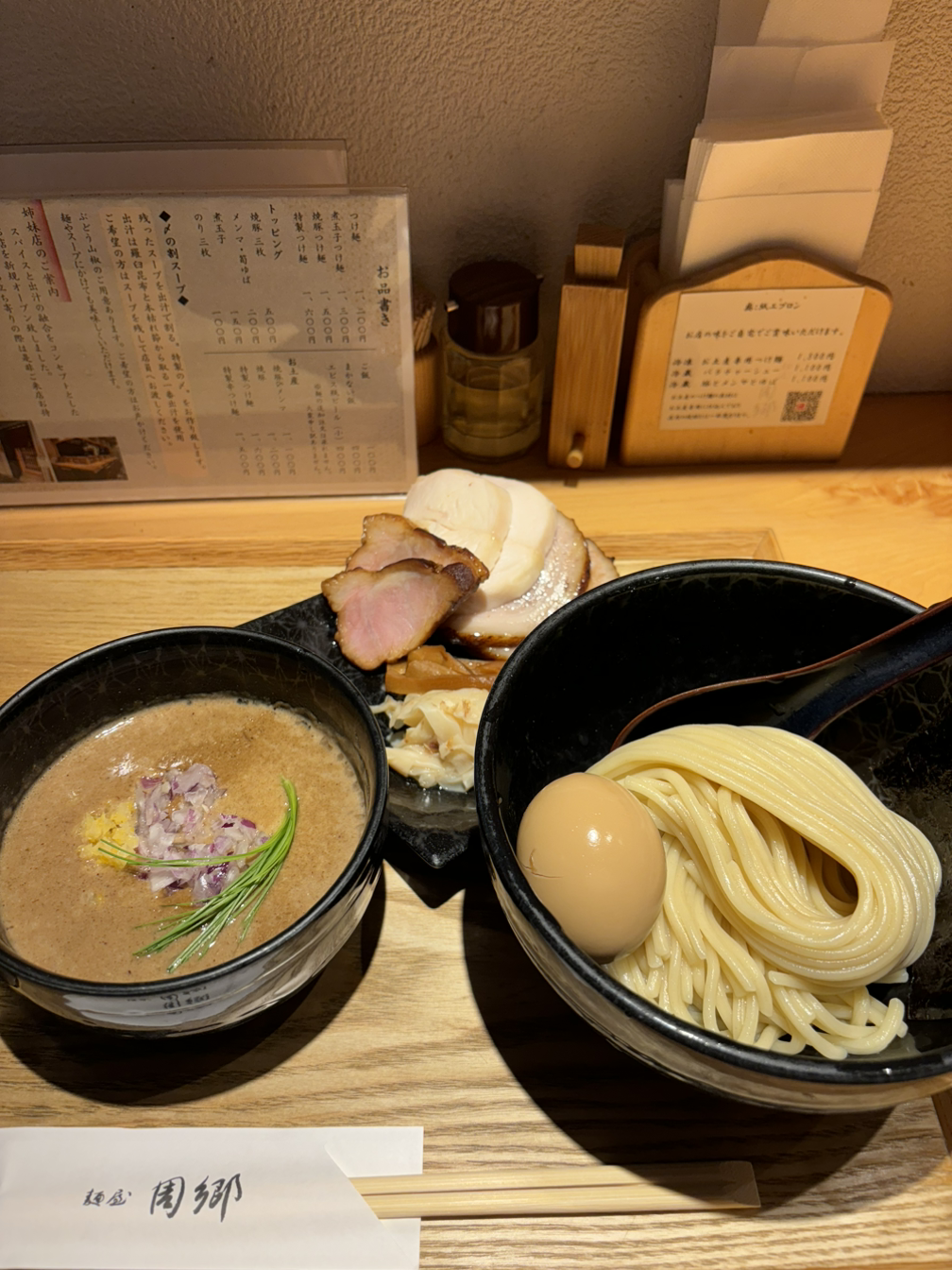 숙소에서 가까운 츠케멘집. 웨이팅 1시간 반. 기다리는 시간이 절대 안 아깝다. 여기가 자판기로 음식 주문을 받는데, 당시 수중에 있던 건 만 엔 한 장. 우여곡절 끝에 바꿔서 주문했다. 가게 내부는 카운터 좌석 5개가 전부라 협소하지만, 음식은 곧 나온다. 면은 파스타로 치면 안단테보다 살짝 더 익힌 정도인데 탱탱하고 식감이 좋다. 3종류의 챠슈를 수프 같이 걸쭉한 국물에 찍어서 먹고, 반숙란을 반으로 쪼개서 국물이랑 먹고, 면을 국물에 담가서 먹고… 국물, 국물, 궁물! 오랜 시간 끓여서 만든 정성이 고스란히 느껴는 묵직한 맛이 난다. 남은 국으로 수프와리까지 먹으면 아름다운 마무리.