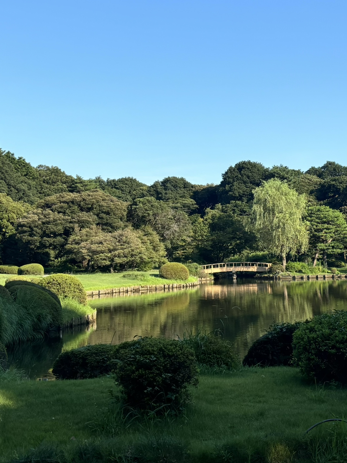 러닝이야말로 도시를 이해하는 가장 좋은 법이 아닐까. 그렇게 두 발로 심장이 터지게 뛰다 보면 자연스럽게 그 도시와 사랑에 빠진다. 나는 2박 이상의 여행이 예정되면 운동화와 운동복을 챙긴다. 일전에 홍콩 여행을 갈 때도 그랬고, 부모님 뵈러 부산에 갈 때도. 이번에도 운동화를 챙기며 어디든지 뛰어야지 하는 심정으로 도쿄에 왔다. 그렇게 해서 달린 곳은 신주쿠 교엔. 31도에 육박하는 더위 속에서 뛰다가 잠시 멈추면, 나는 모네의 수련 속 정원에 있었다.