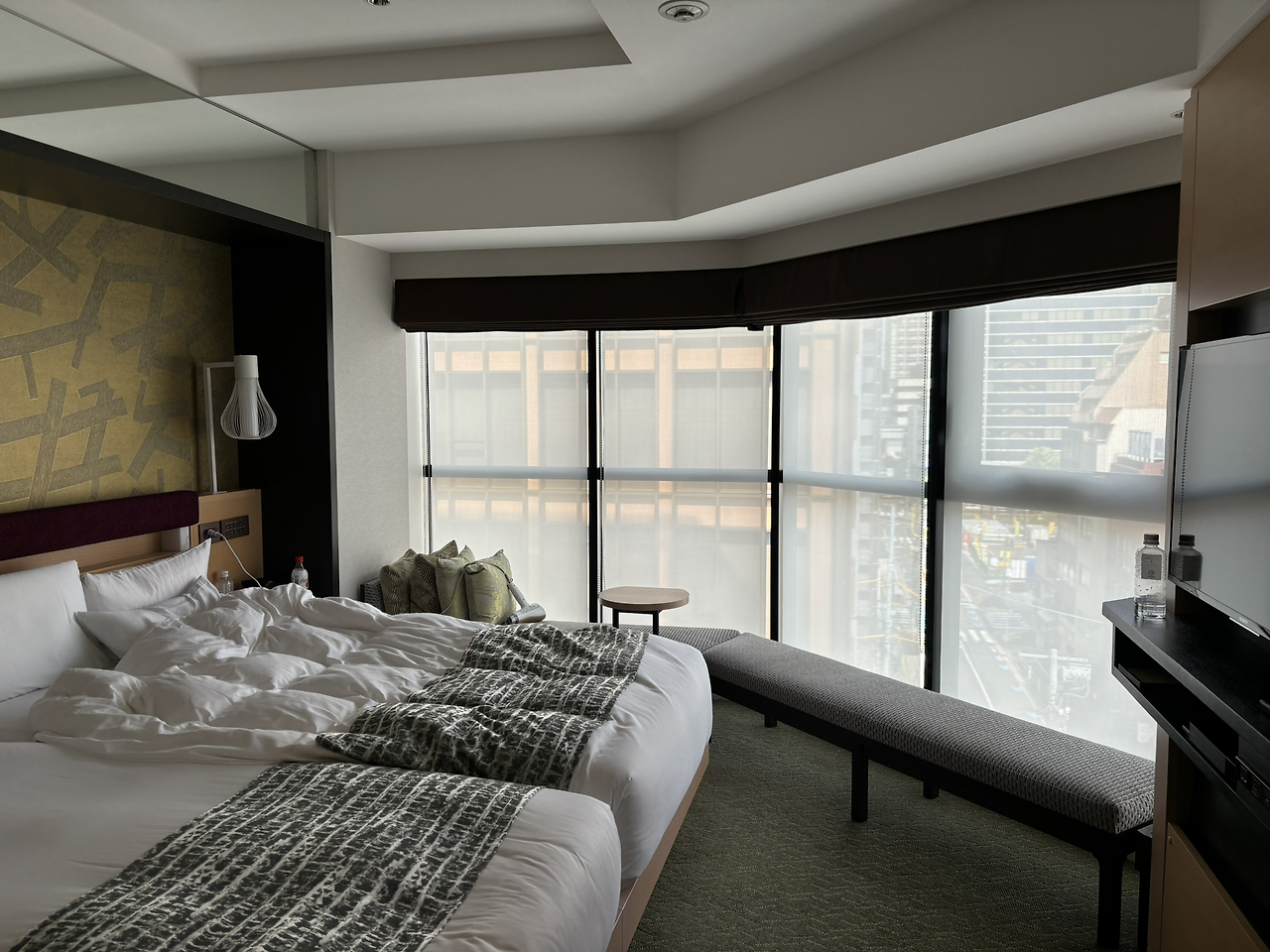 호텔 리셉션 데스크 뒤편으로는 차 마시는 공간이 있어서 투숙객들에게 오전(7:00-9:00)과 오후(3:00-10:00) 무료로 마차와 녹차를 준비해 준다. 카운터 테이블에 앉아서 마차를 정성스럽게 만드는 모습을 보는 것도 재미 중 하나. 마차는 비린맛이 없고 쌉싸름한 맛이 담백한 맛과 조화롭다. 녹차는 신맛이 적은 편. 무엇보다 맛집이 가까워서 대만족.