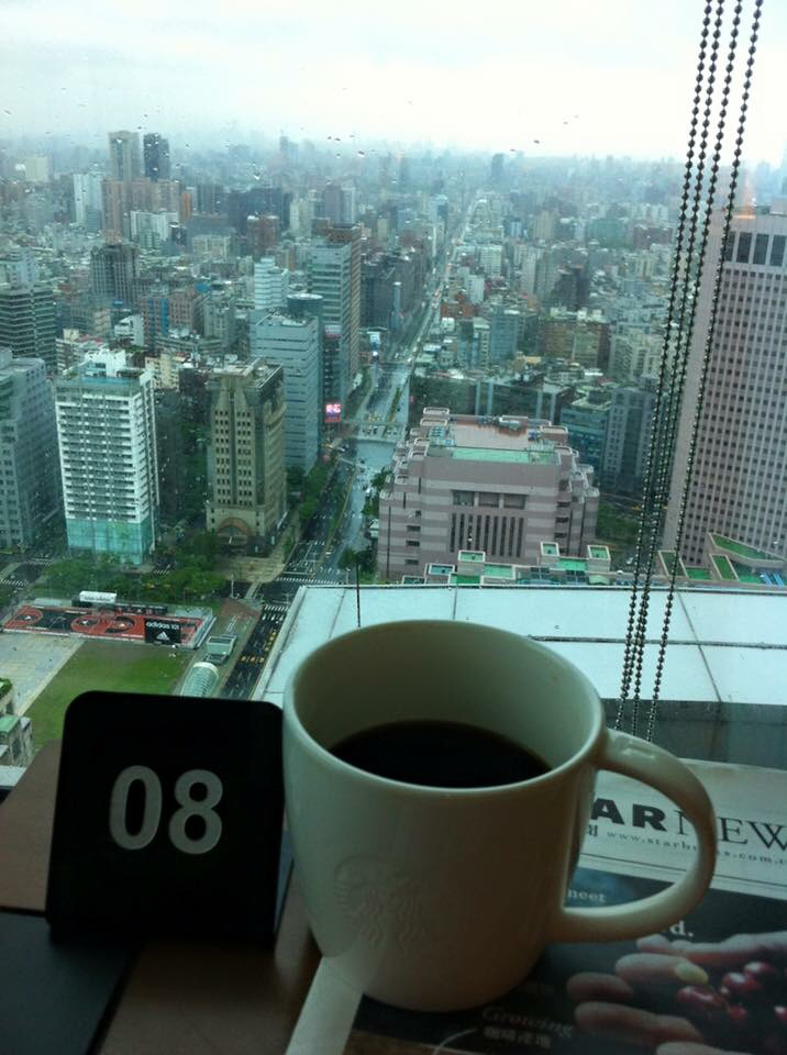 빌딩 35층에 있는 스타벅스. 마침 태풍이 왔던 시기라 운치 있게 내리는 비를 보며 커피를 즐길 수 있었다. 현재는 사전 예약제로 변했고, 인당 최소구매금액도 있어서 잘 고려해야 함.