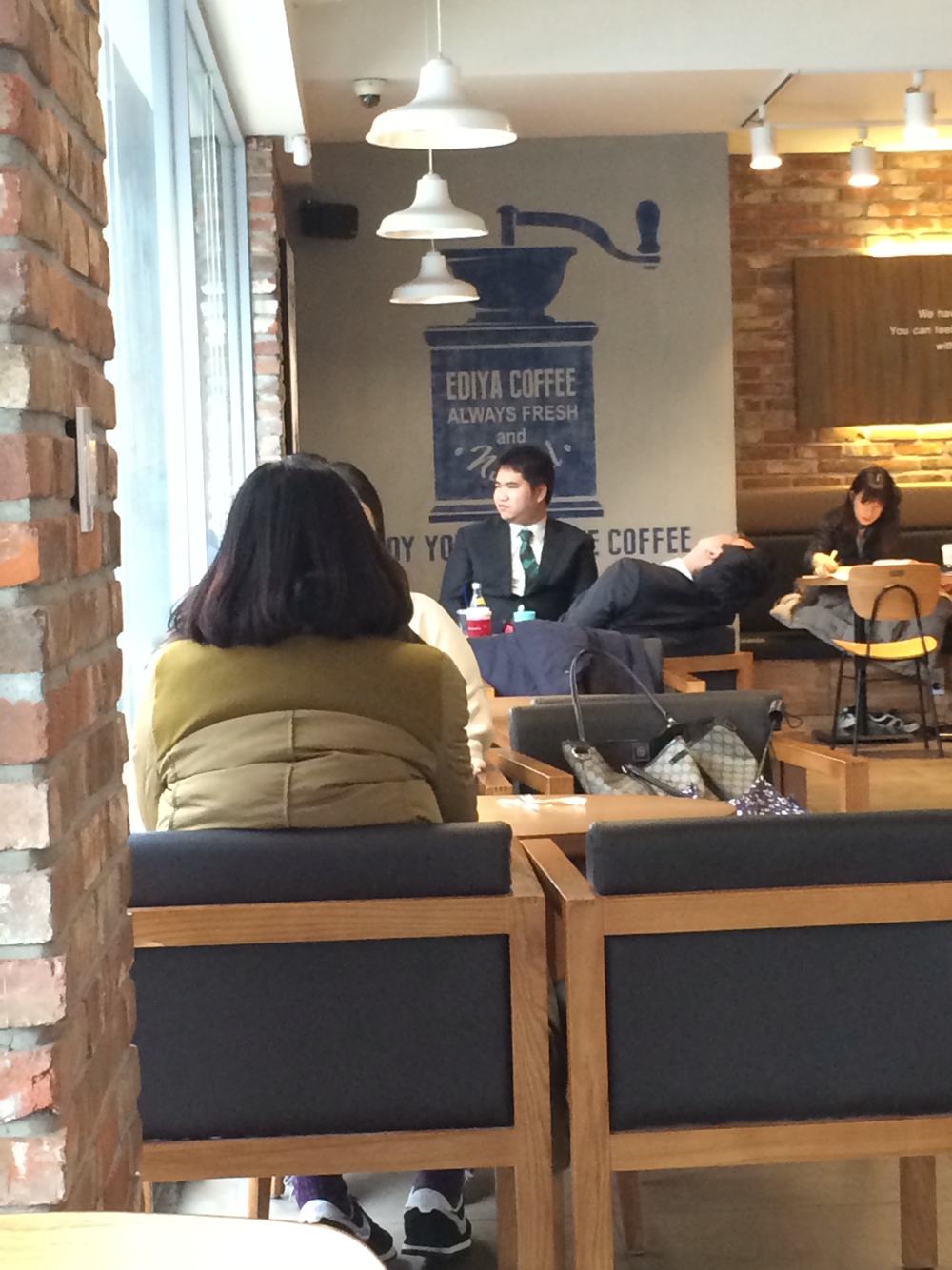 이곳은 이디야 OO점입니다 어느 토요일 오후 양복쟁이 몇몇이 대화를 하고 있었고, 그중 한명은 잠에 취해 풍선인형 코스프레 -