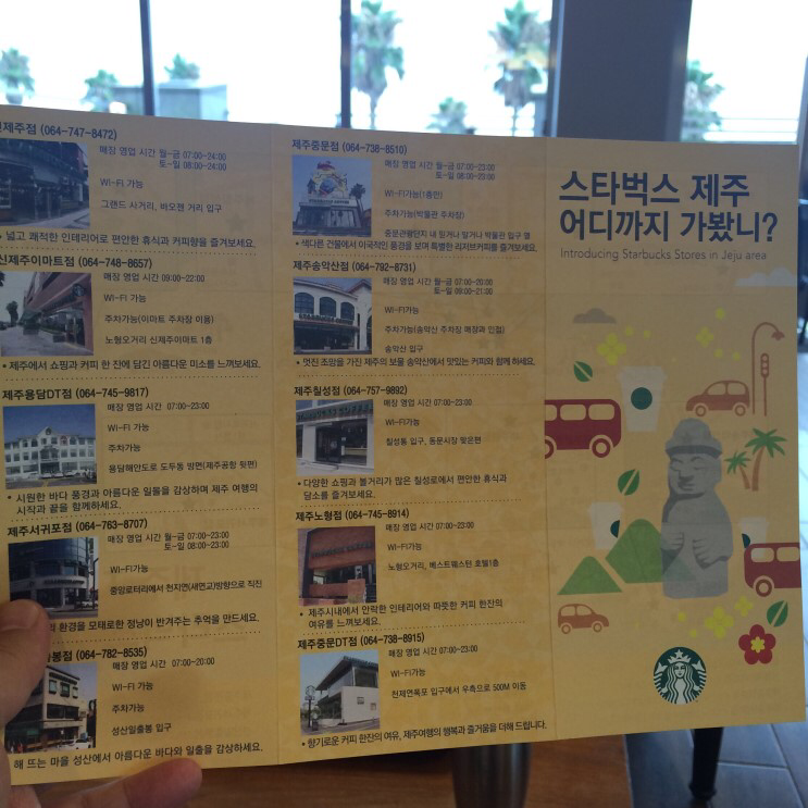 중문단지점에서 발견한 스벅 제주 팜플렛, 언젠간 제주 스벅 투어를 해봐야지
