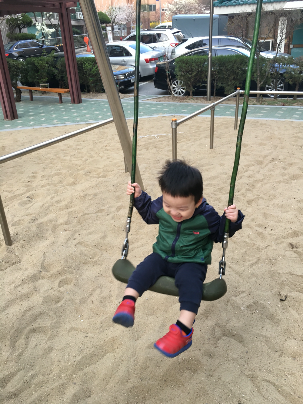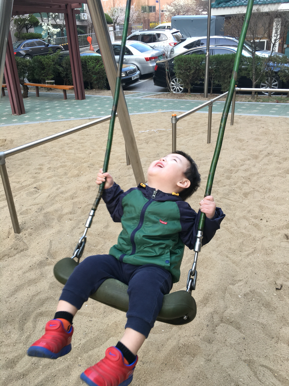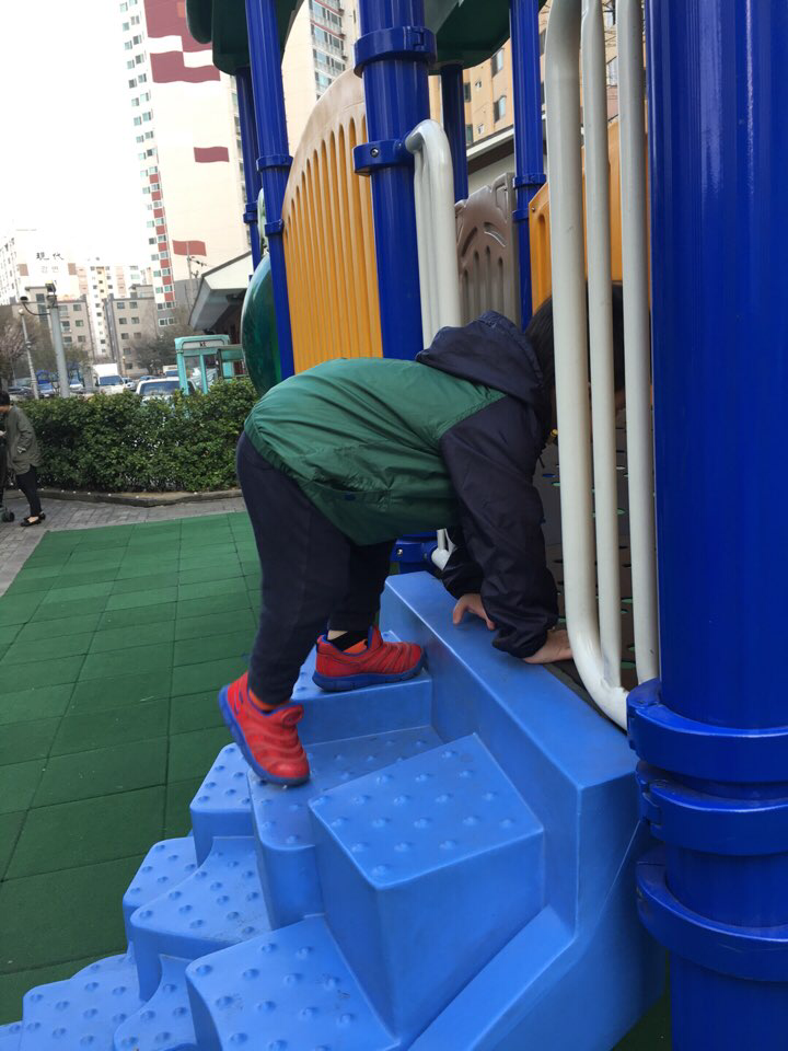 겁도없이 너는 너보다 머리하나 큰 형아를 미끄럼틀에서 밀었단다 아빠가 안 구했으면 그 형아가 너를 바닥에 메다 꽂았을거야 큰 형아든 짝은 동생이든 밀지좀마