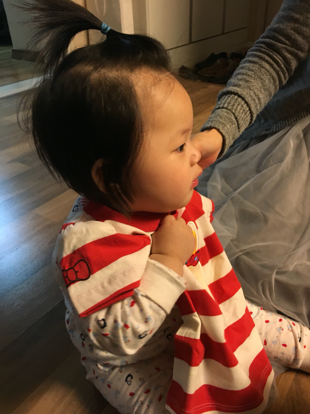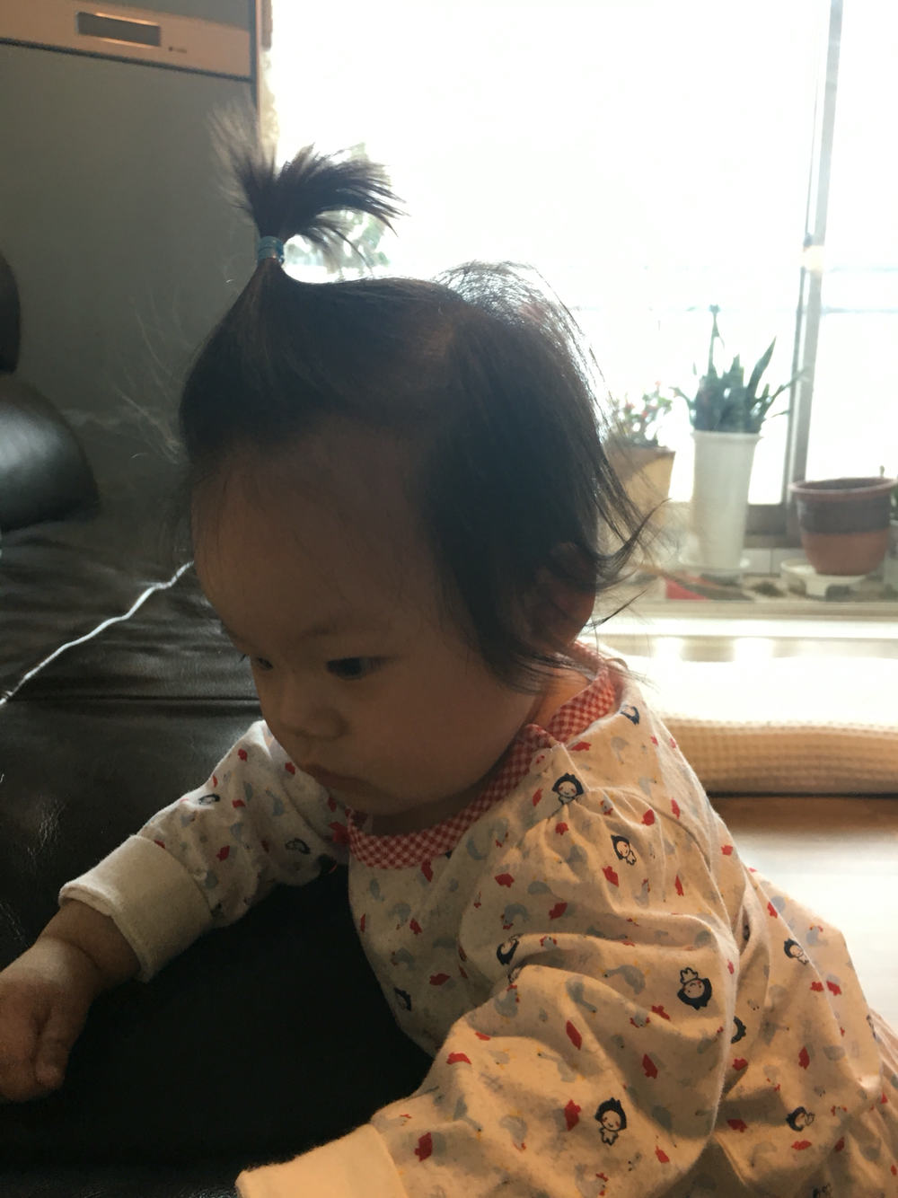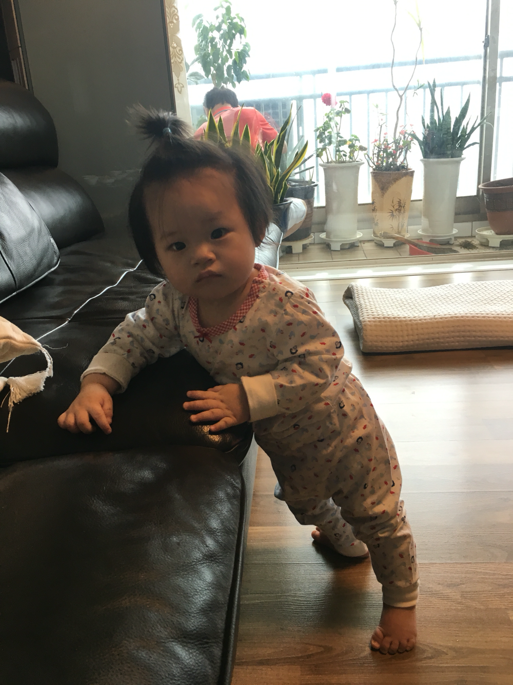 다음날 아침 소이가 벌써 일어나 소파잡고 놀고 있군요 한참 구강기라 머든 입에 넣고 있어요 가능하다면 소파도 맛보려하겠지요