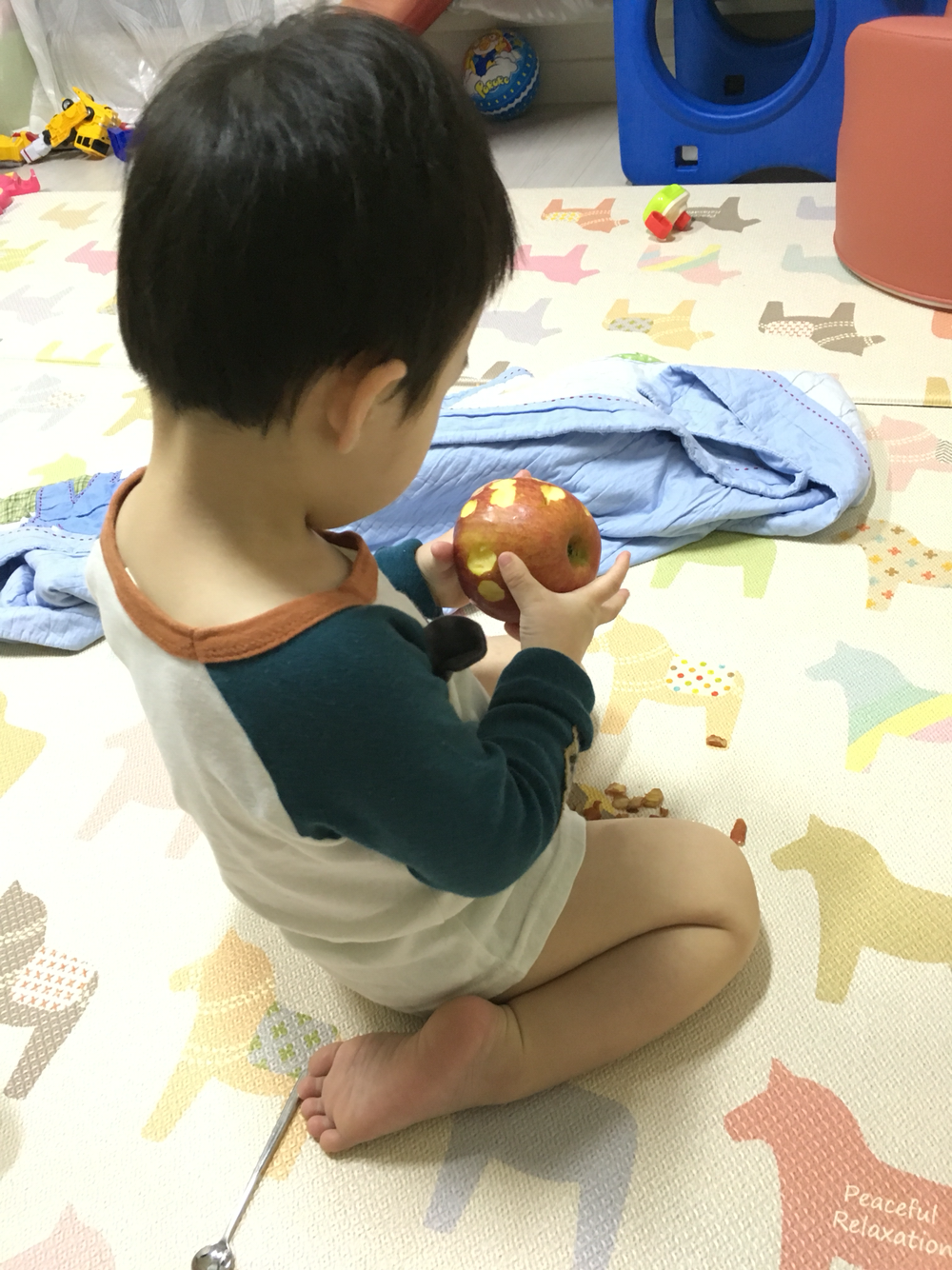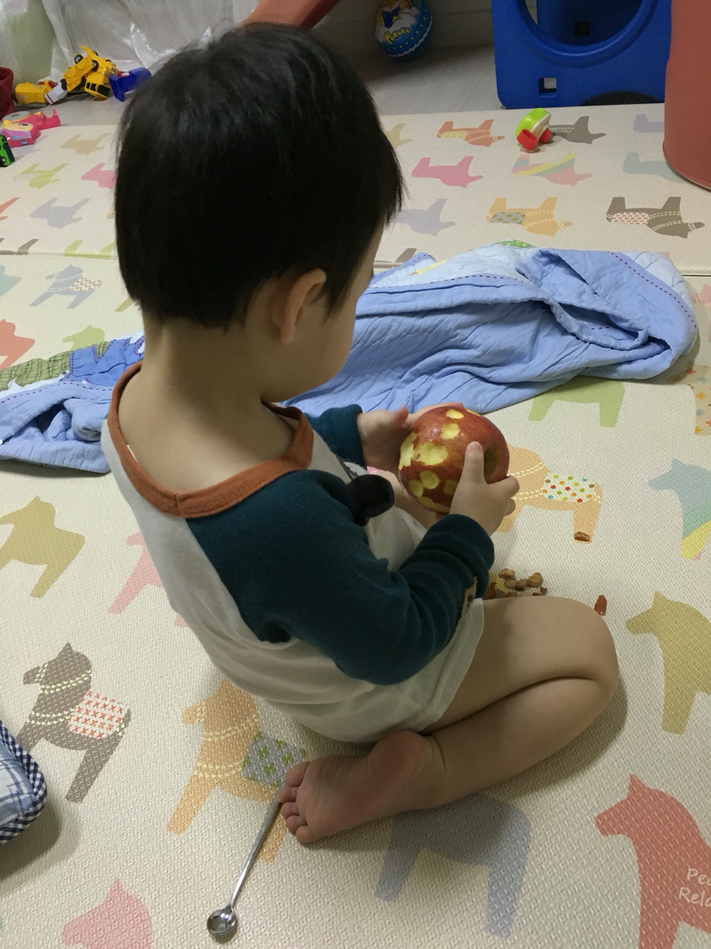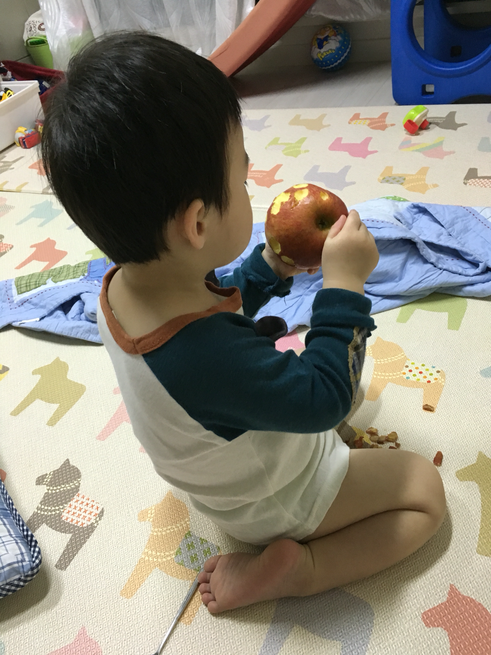 사과를 먹는 새로운 방법을 보여주는 티현군