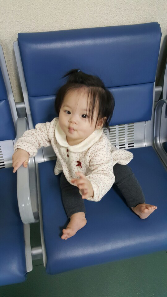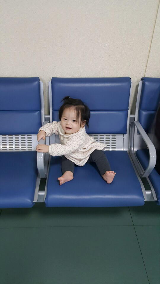 공항의자 위 소이. 6월 돌잔치때 또 보자~