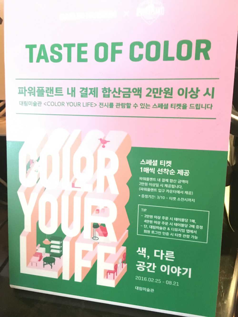 3. 전시 의도 자체가 디자인과 색깔의 과잉시대를 담아내려고 했던 것일까? 그랬다면 기획의도는 성공이지만... 색 자체를 다루는 몇몇 작가들 위주로 깊이있게 들여다 보았으면 어땠을까