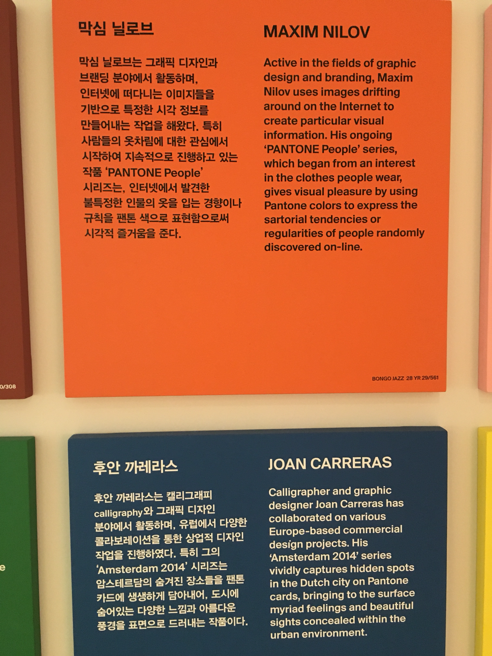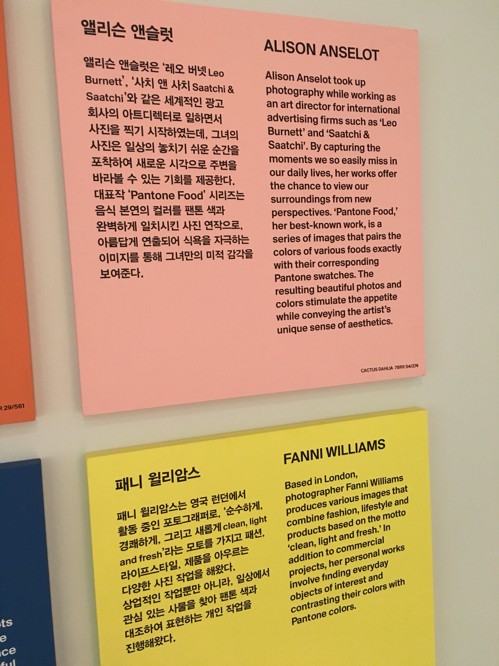 전시된 작품들은 팬톤컬러를 따라 색깔의 기준점을 보여주고 있었음