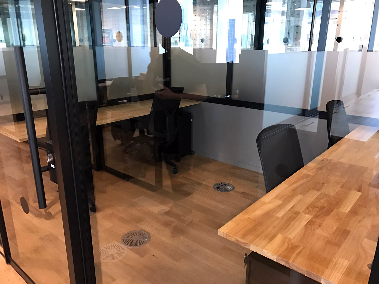 담당 매니저와 이용 관련 협의를 나눈 후, 오피스 가이드를 받았습니다. 팀 회의실은 최소 2인부터 상주 사용 가능하고, 4인 6인 10인 등 팀 부스도 견학하였습니다. 채광창의 방향과 위치에 따라서 부스별 가격도 상이하다고 하더군요. 한국 사무실에 익숙한 파티션은 제공하지 않는다고 합니다.