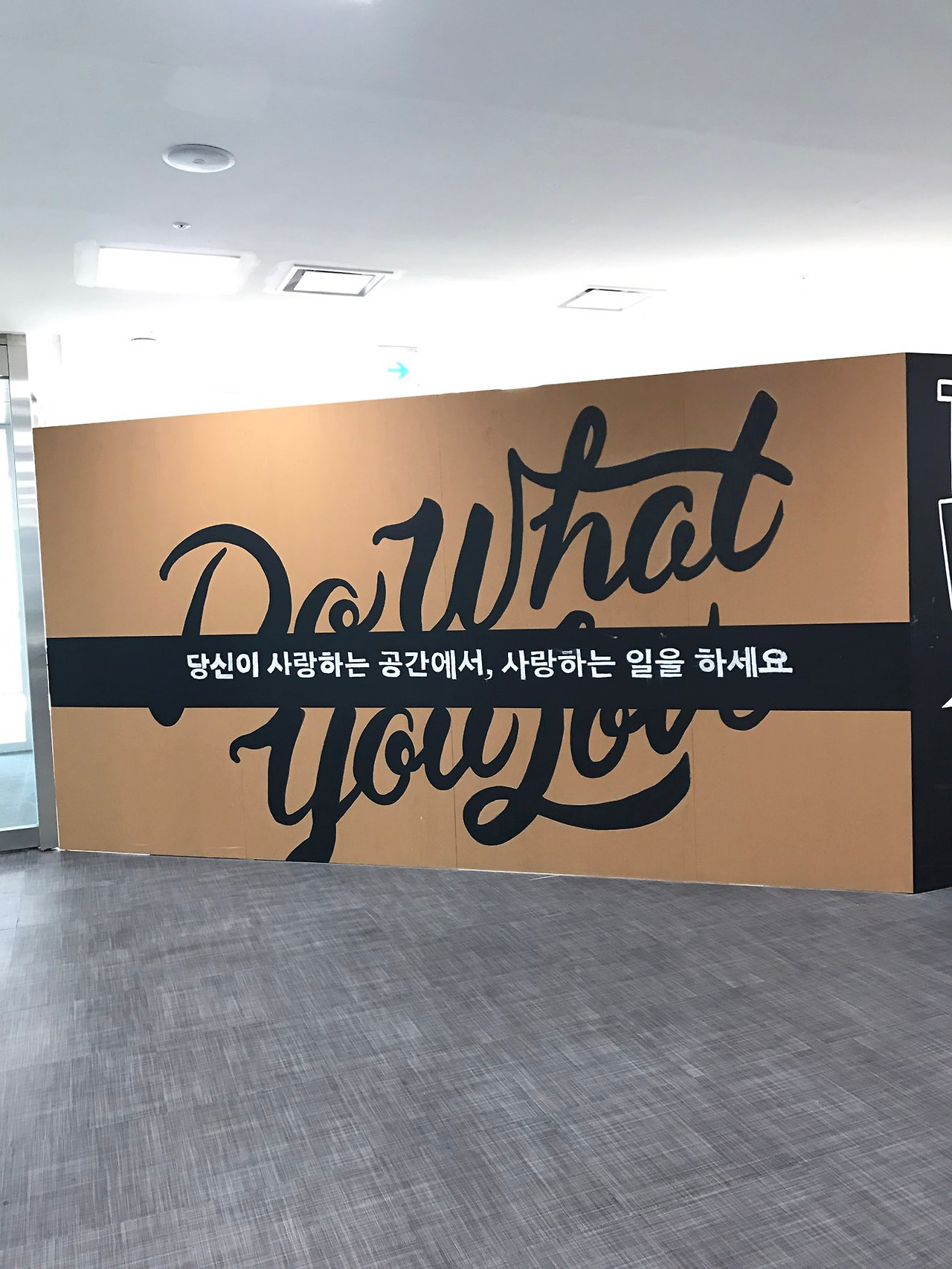 2층에 들어서자마자 위워크 슬로건 "DO WHAT YOU LOVE"로 도배
