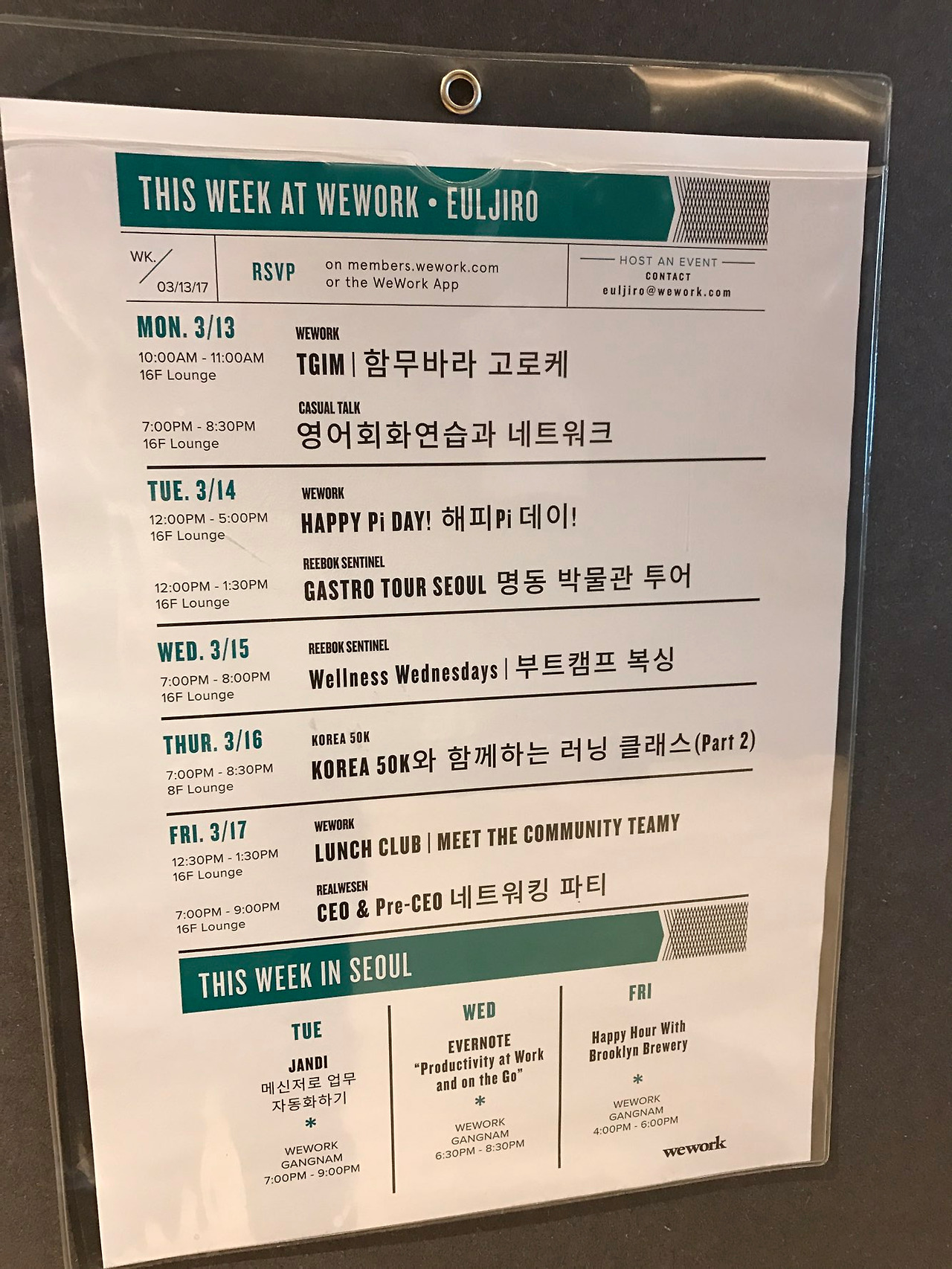 주로 위워크 앱을 통한 업체별 비즈니스 태깅 검색과 이벤트, 세미나, 파티 등을 통한 오프라인 네트워킹 지원이 수시 진행된다고 합니다. 실제 성공적으로 연결된 비즈니스 사례로는 크게 2가지가 있는데, 현재 강남점에 입주하여 있는 OO맥주 해외마케팅팀과 OO카드 출신 스타트업 간에 이루어진 콘서트 마케팅 건과 강남/을지로점에 입주중인 화장품 OO사의 신사업개발팀과 화장품 스타트업간의 해외 진출 계약건이 체결되었다고 하는군요.