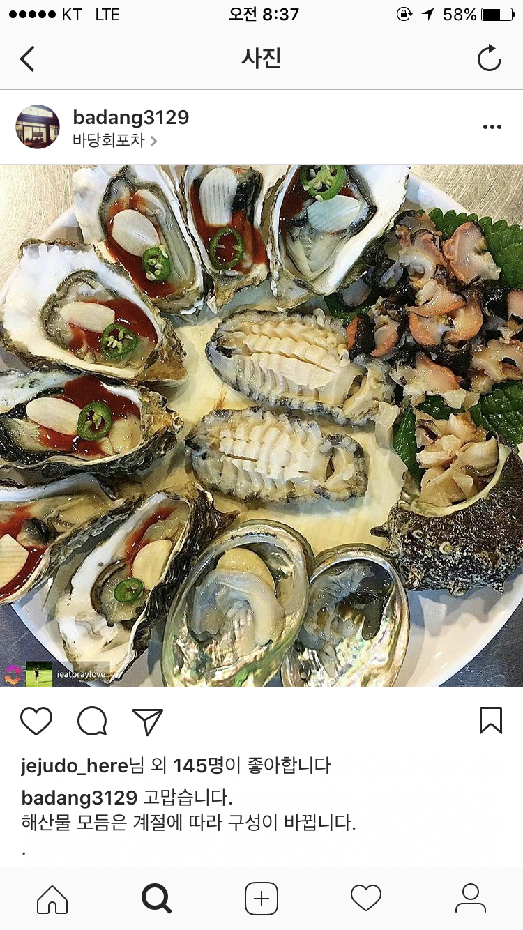 + 횟집은 제가 일년에 서너번 들리는 사수만수(064-743-8828 도두동 1676)를 집어봅니다.