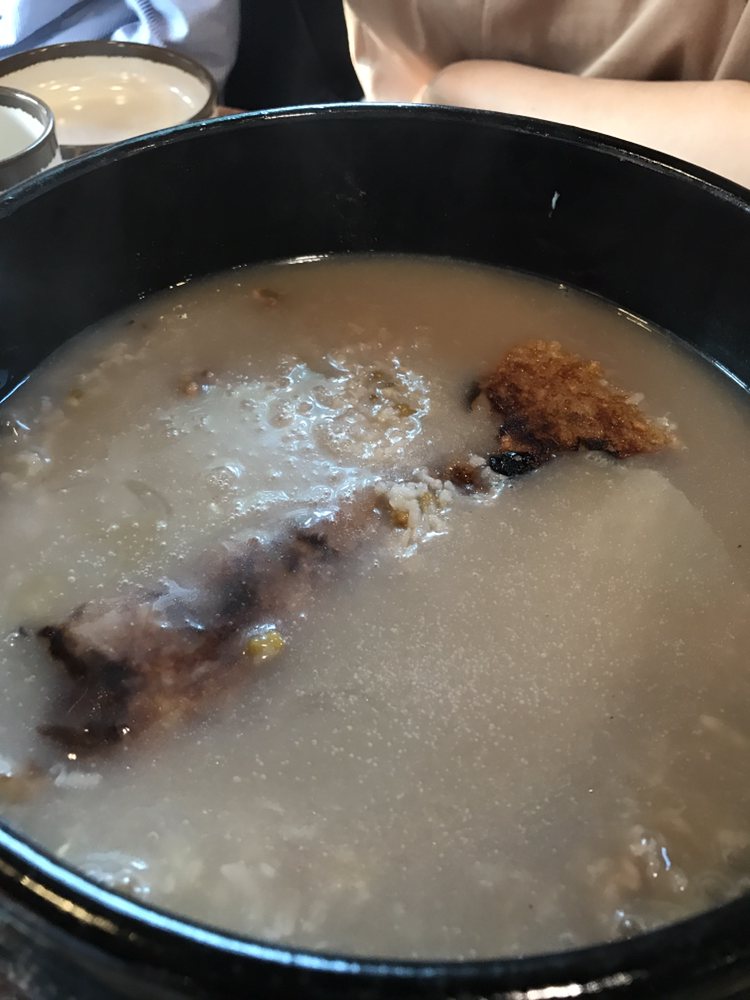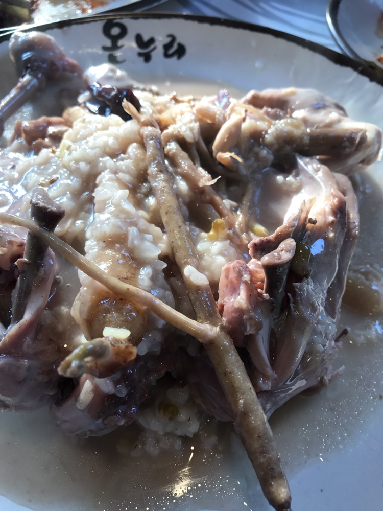 기다리던 누룽지백숙... 이 나왔는데 토종닭이라 그런지 고기는 좀 찔겨요 ㅜ 이 누룽지는 아주 진국입니다 무슨 약죽 먹는 느낌 ㅎ 맛있고 진하지만 많이는 못먹겠더라고요 ㅎ