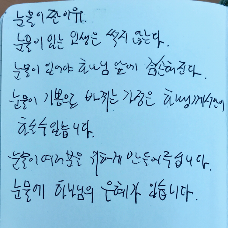 눈물자국. 주님 눈물을 흘리는 이순간만큼은 진실합니다.