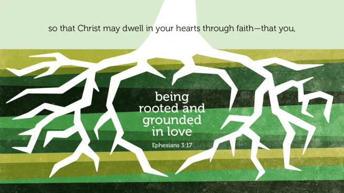 17 믿음으로 말미암아 그리스도께서 너희 마음에 계시게 하시옵고 너희가 사랑 가운데서 뿌리가 박히고 터가 굳어져서
