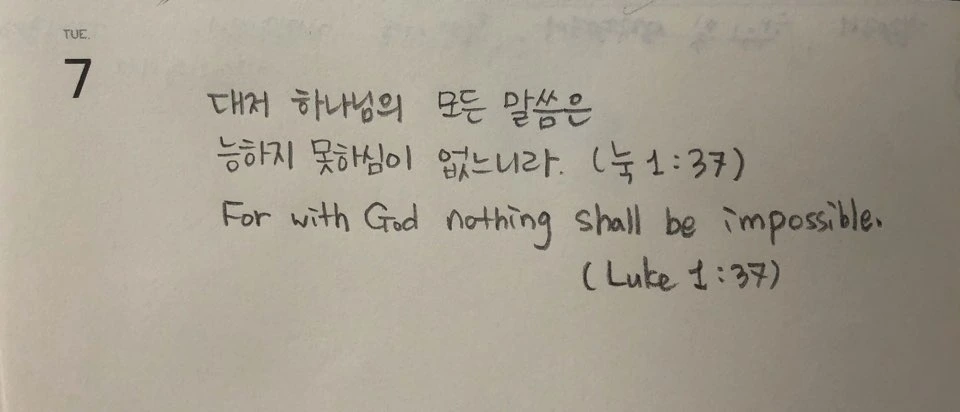대저 하나님의 모든 말씀은 능하지 못하심이 없느니라 (눅1:37)