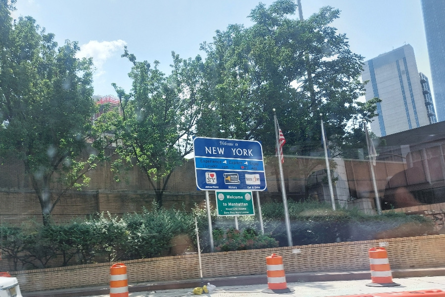 챙겨 먹고 정신없이 졸다 깨다를 반복하다 보니 뉴욕 도로표지판이 눈에 들어왔다. 이렇게 우리의 두 번째 신혼여행이 시작되고 있었다.
