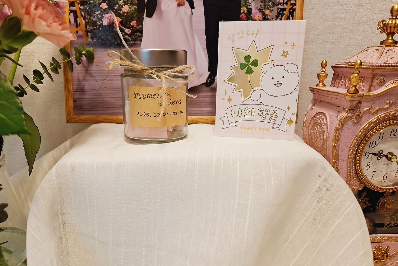 지난 2월 발렌타인데이를 맞아 남편과 나는 소소한 이벤트를 했다. 한 주 동안 서로에게 사랑을 느꼈던 순간, 고마웠던 순간을 수시로 메모해 유리병에 담아두고 밸런타인데이에 오픈해 함께 읽어보았다. 평소 글을 쓰기 좋아하는 우리 부부에게 적합한 활동이었고 마음도 따뜻해졌음은 물론이다. 서로에게 남긴 쪽지를 읽으며 너무 놀라웠던 건 불가 이틀 전 일인데도, 내가 한 일인데도 까맣게 잊어버린 걸 상대방이 기록해 두었기에 다시 기억해 낼 수 있었다. 우리는 앞으로도 서로에게 짧은 편지를 써서 매달 유리병을 채워가기로 했다.