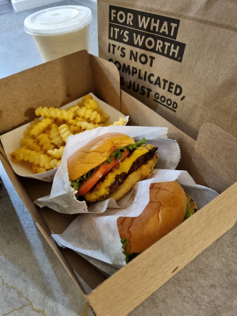 쉽게 가시지 않는 뮤지컬의 여운을 간직한 채 숙소로 돌아가는 길에 들른 쉑쉑버거. 늦은 시간이었지만 식당은 사람들로 북적였고 우리는 햄버거를 포장해 가 숙소에서 먹을 생각이었다.