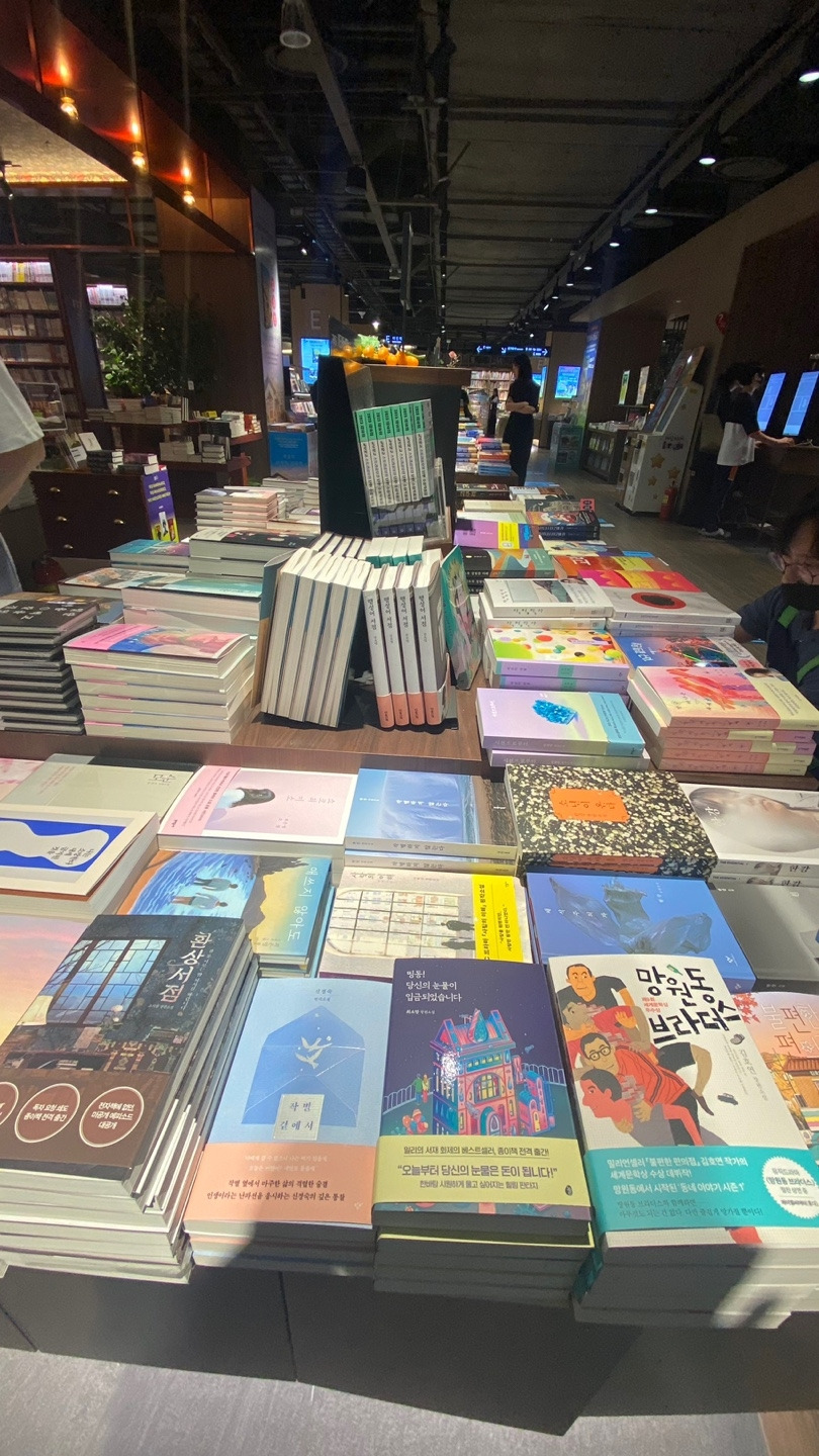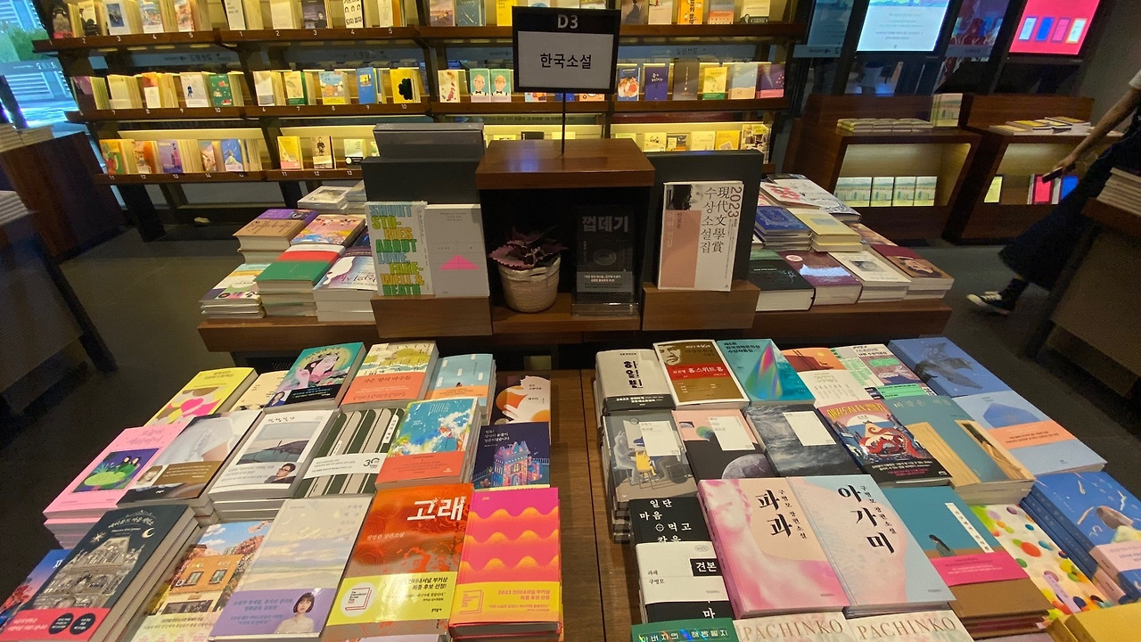 근데 광화문점은 소설 자리 자체가 별로 좋지 않은 것 같아요. 세개 입구 모두에서 가장 멀고 코너 도는 곳에 놓여져 있어서 차분히 서서 책을 보기가 어려운 동선이라 유명 작가님 책이 아니고서는 찬찬히 둘러보기가 좀 어려운 느낌이에요.