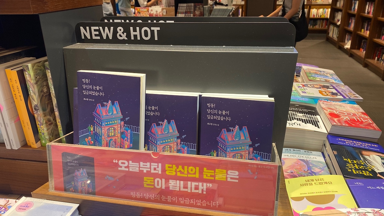 수유점은 지하철역에서 나오자마자 바로 앞이라 교통이 좋았어요. 이곳도 작은 매장에 속했는데 동선이 짧아서 뉴앤핫 코너 금방 찾을 수 있었어요. 제 책이 바탕이 진한 남색이다 보니 뉴앤핫 매대색이 검정색이면 눈에 잘 띄진 않더라고요 ㅎㅎ 밝은색상 책을 내신 작가님들의 책이 더 눈에 잘 보일 것 같아요 ㅎㅎ