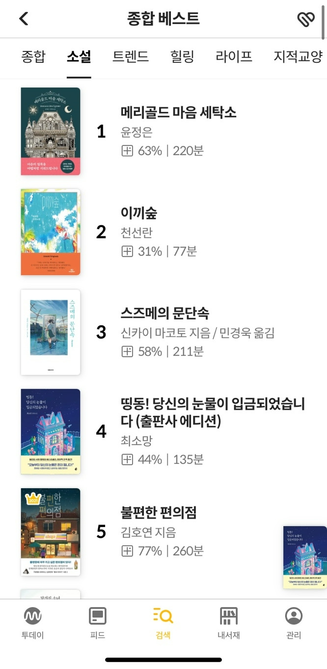 밀리의 서재에서는 4위까지 올라갔더라고요.