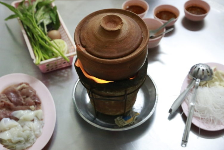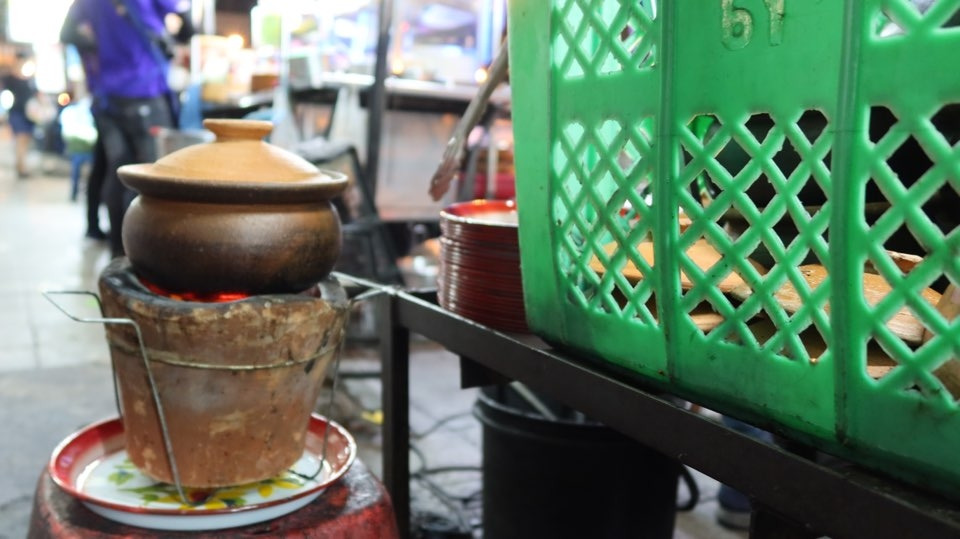 그렇게 든든히 먹고 이 지역 여기저기를 걸어 다녀보니 정말 많은 로컬 주민들이 이곳저곳에서 야식을 드시고 계셨다. 그중에서 특히 나의 눈을 사로잡았던 것이 있으니 바로 위에 사진에 보이는 커다란 클레이 팟 안에 샤부샤부처럼 다양한 재료를 잠시 담갔다가 먹는 요리인데 지금은 검색을 해보니 Jim Jum 혹은 Chim Chum이라고 한다. 찜쭘이라고 읽는다.