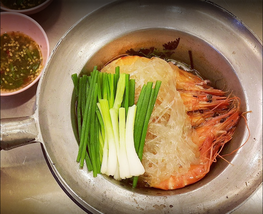 그동안 먹었던 태국 음식이랑은 굉장히 다른 느낌이었고 그동안 먹었던 음식에서도 느껴본 적이 없었던 맛이었다. 통통하고 커다란 새우살을 까서 같이 삶아져 나온 당면과 파의 돌돌 감아 한입에 꽉 차게 먹으면 입안 가득 바다와 육지가 채워진다.