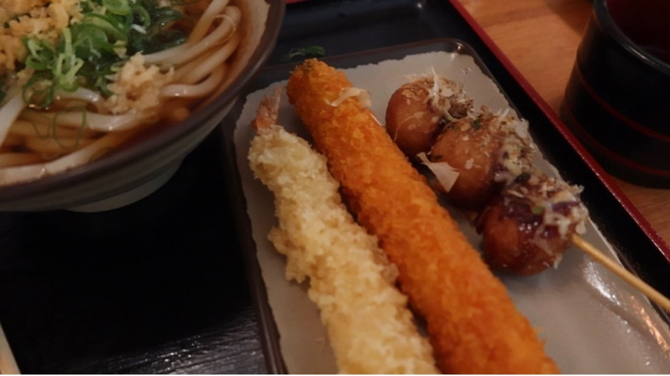 아주 탱글탱글한 면발에 고춧가루, 다진 파 등등을 취향대로 듬뿍 올려주고 중간중간 새우튀김이나 다꼬야끼 같은 사이드 메뉴랑 함께 먹어주면 저렴한 가격에 크게 만족할 만한 행복한 한 끼 식사가 된다. 유학생 시절 때는 매일 후드티를 뒤집어쓰고 공부하다 졸린 눈으로 들려서 먹고 가곤 했는데 여행자로 와서 식사를 하니 새삼 옆 테이블에 유학생처럼 보이는 손님들에게 쓸데없이 과한 감정이입을 하며 "나도 저랬었지"라는 기분이 들게 하는 식사였다. 추억의 맛은 참 즐겁다.