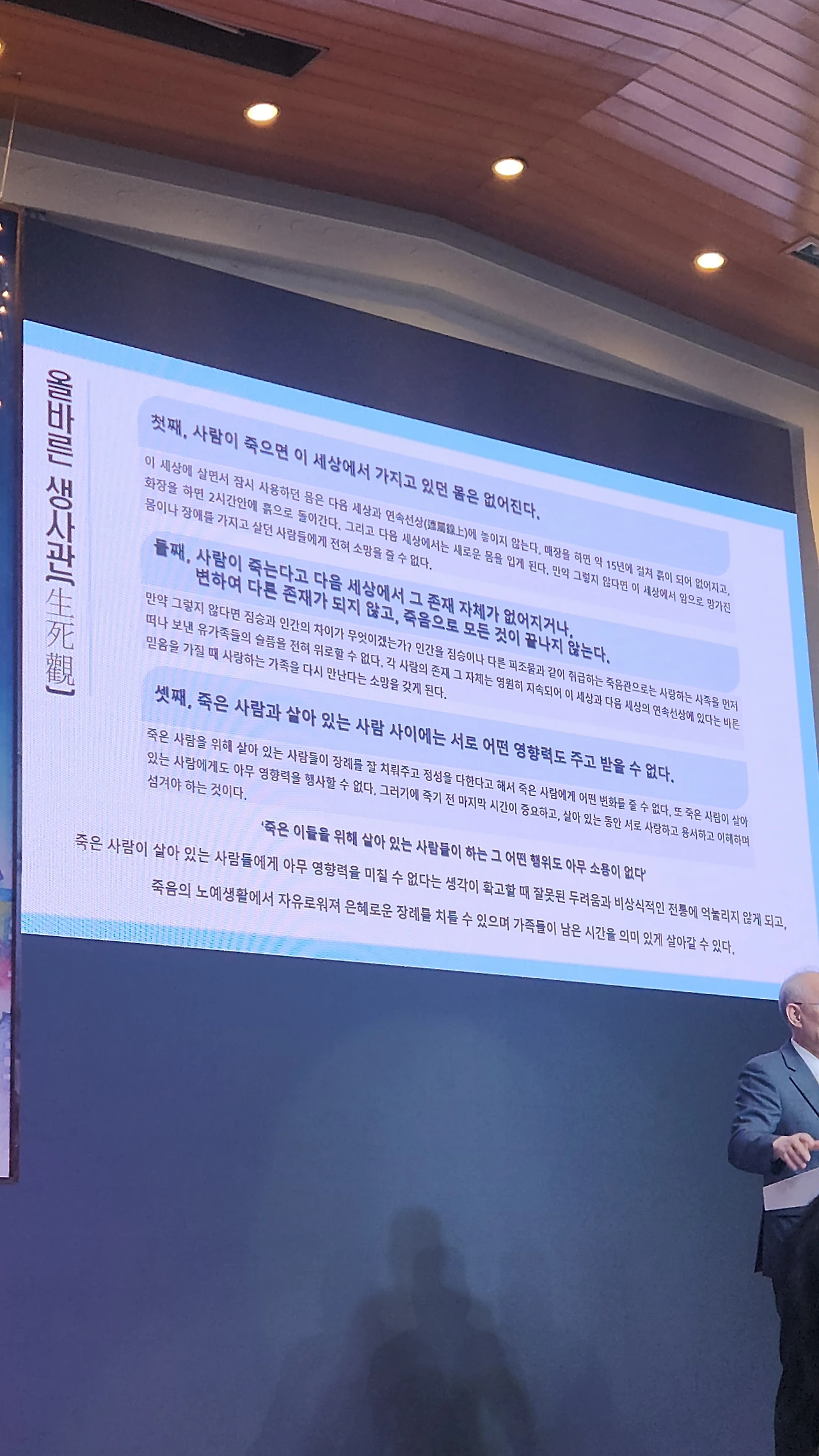 나는 오래전부터 종교적 믿음을 품고 살았다. 그리스도인에게는 구원 후 영생이 있다는 걸 믿는다. 그러나 오늘 내가 여기서 죽음에 대한 이야기를 하는 것은 준비된 죽음은 신앙이 있는 사람에게만 해당되는 주제가 아니라고 믿기 때문이다. 죽음이란, 누구에게나 공평하게 다가오는 인생의 마지막 장면이다. 그렇기에, '죽음을 준비한다'는 것은 결국 '남은 삶을 더 온전히 살아가고자 하는 인간의 의지'에 관한 것이다.