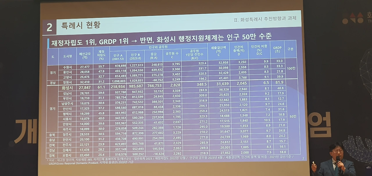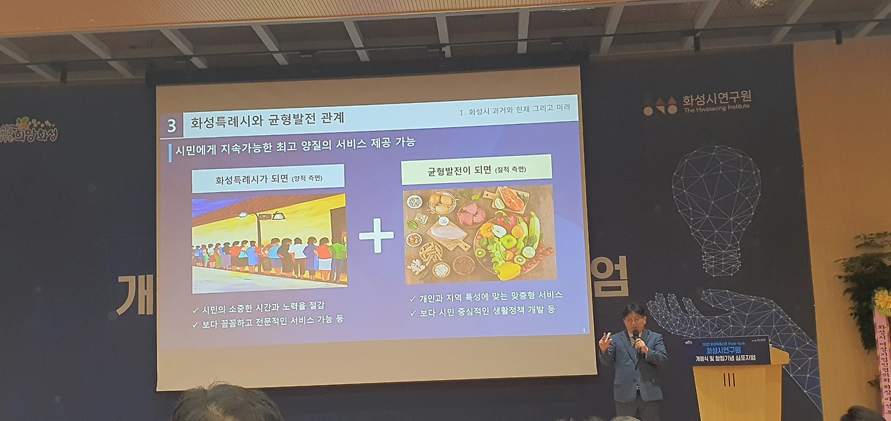저는 화성시에서 데이터업무를 하고 있습니다. 어제는 화성시연구원 개원식과 창립기념 심포지엄에 참석했습니다. 데이터 업무 고유 특성과 제 개인의 성향이 만나 일을 할 때 연구자료를 많이 찾아봅니다. 그럴 때마다 서울, 수원, 창원 등 연구원이 있는 도시가 부러웠습니다. 우리 시도 연구원이 있어서 시 현안과제에 대한 진단도 해주고 인사이트까지 줬으면 좋겠다는 생각을 자주 했었죠.