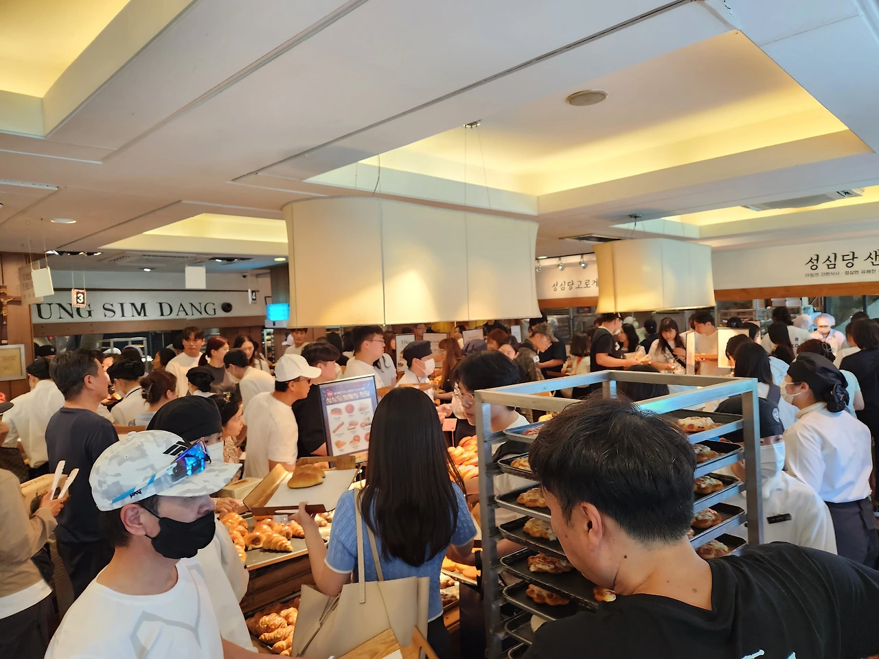 30분가량 줄 서서 들어간 매장은 그야말로 전쟁터. "줄 선 본전 생각"이라는 강력한 동기가 빵 쇼핑 카트를 가득 채우게 만들더군요. 젊은이들의 눈빛은 "인스타 각"을 찾는 맹수 같았고, 저 역시 평소보다 몇 배는 더 담았습니다. 계산대 앞, 5만 원에 육박하는 금액에 흠칫했지만, 이미 빵 봉투는 제 손에...