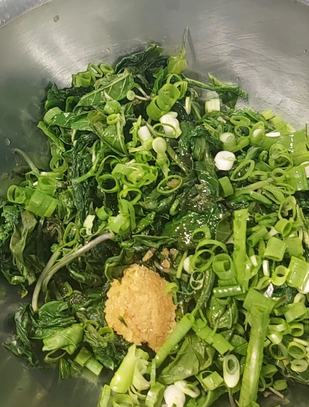 아마도 겉절이 무치듯 간장 고춧가루가 기본양념이겠거니 생각했는데 나의 예상과는 달리 데치고 씻고 물기 꽉꽉 짜내고(데치고 나니 한주먹 깜도 안됨) 넣을 양념들은 또 얼마나 많은지 조리 복잡한 나물을 무치듯 무쳐 내는 음식이었다.