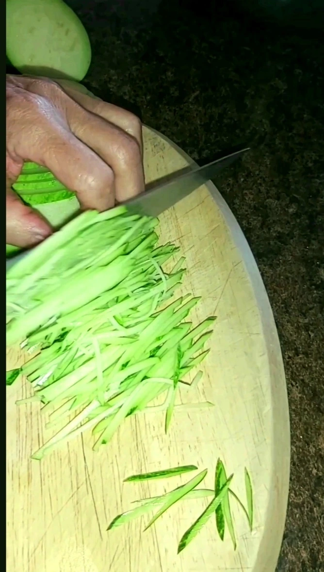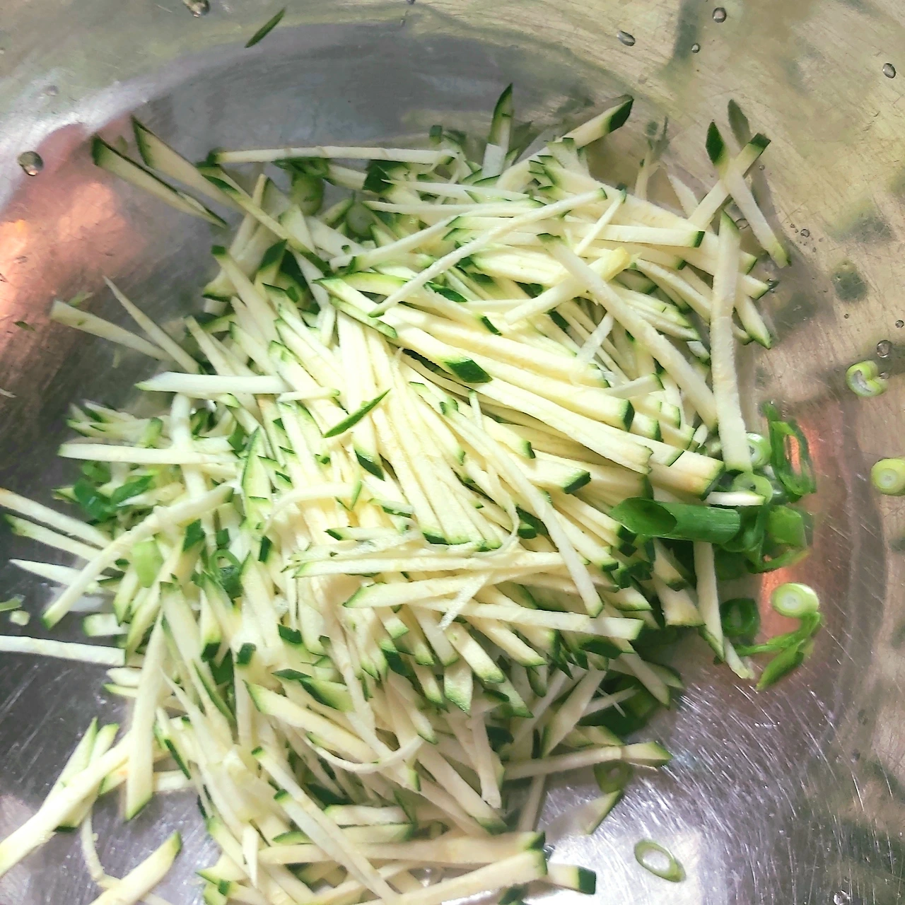 고향식 호박전은 동그랑땡 모양이 아닌 애호박을 채썰어 부치는 부침개 형태다 호박을 곱게 채서는건 엄마가 도와 주었다.