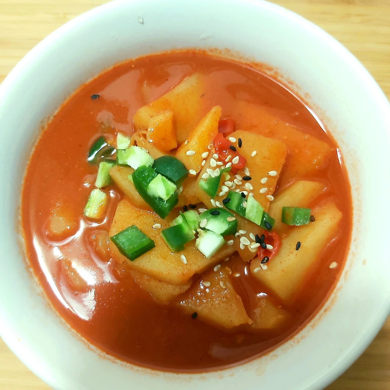 고추장 찌개의 유래가 장문화와 고추장의 원산지인 전라도 에서 생성 되었으리라 생각하겠지만 고향이 전라도이고 전라도에서 30년을 살아온 이로서 확실히 말해 두건데 전라도는 된장을 넣은 음식이 발달되었지 고추장을 이용한 요리는 그리 많지 않다. 고추장 찌개의 원조가 어느 지방인지는 알수 없으나 전라도 내 고향식 고추장 찌개는 감자만이 아닌 호박을 함께 넣기도 한다. 고추장 조금에 고춧가루를 약간 풀고 국간장으로 간을해 국물을 시원하게 만드는게 특징이다. 그러나 나는 후루룩 국물같은 맛이 밋밋하여 살짝 레시피를 달리 한다. 국물은 자작자작 찌개 같고, 간은 고추장과 간장으로만 간을 하여 달달 짧조름하며 감자외에 두부나 호박 같은 다른 재료들을 섞지 않는다 . 그래야 감자가 제철인 6월에 감자의 꾸덕꾸덕 포슬한 식감과 고소한 맛을 제대로 즐길수 있기 때문이다. 순전히 내입맛에 맞춘 나를 위한 나만의 고추장 찌개 레시피 인 것이다.