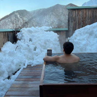 몇 차례 택시와 전세탕 예약 메일을 보냈으나 읽고도 회신을 주지 않은 것 치고는 지나치게 다정하고 친절한 리셉션에서 체크인을 했다. 방은 일본식 다다미 방에 침대만 웨스턴 스타일로 골라 예약했다. 창밖으로 설경이 보이는 거실은 낭만적이고, 아늑한 침실은 분리되어 있고, 화장실에는 히노끼탕이 딸려있어 여차하면 밤 새 목욕을 할 수도 있었다.