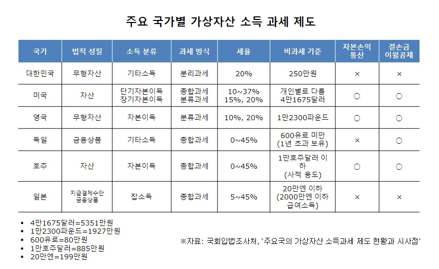 가상자산 수익 5000만원까지 비과세 추진… 다른 나라는?