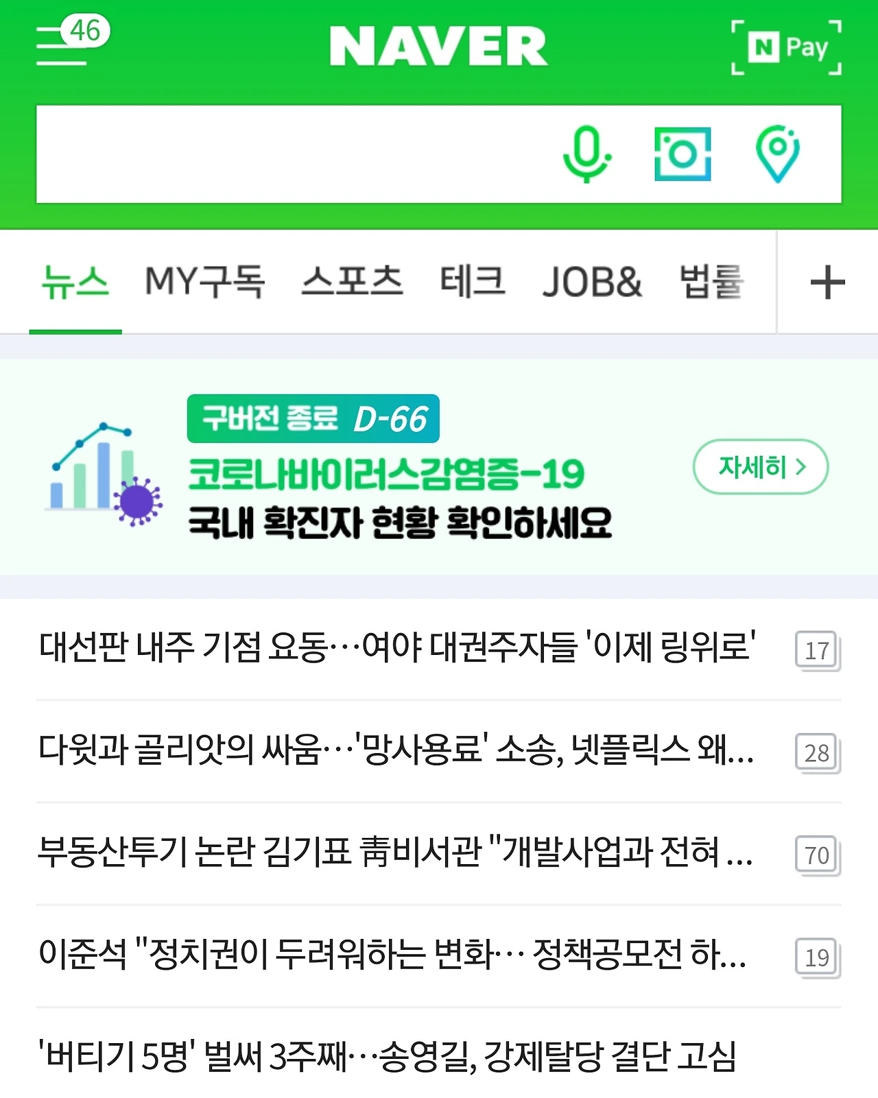네이버 모바일 첫화면 추천뉴스. /출처=네이버.