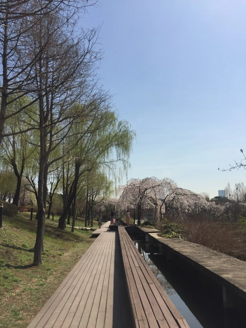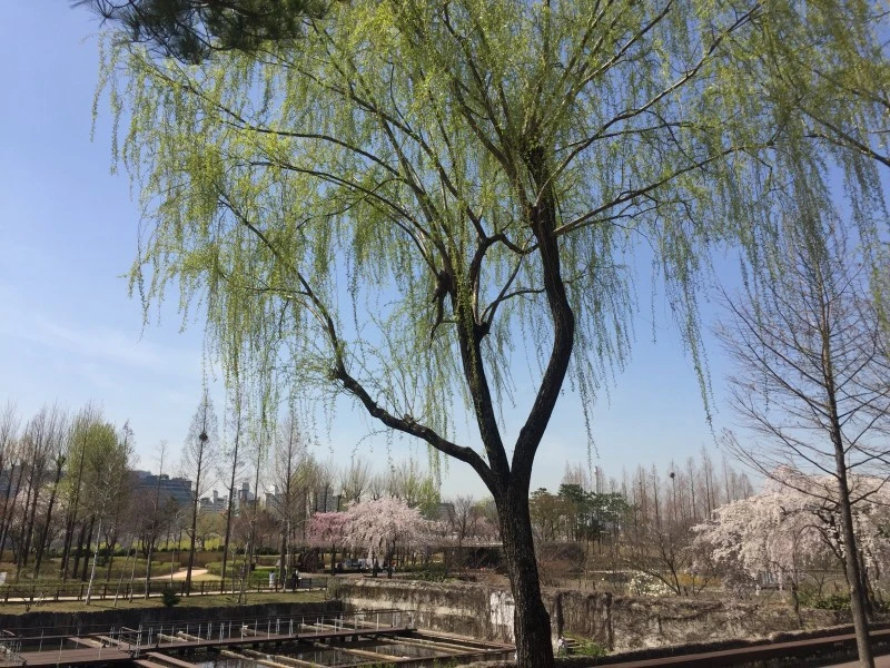 그런가하면 벚꽃만큼이나 아름다운 버드나무도 보입니다. 벚꽃이 지고나도 여전히 푸르름을 자랑할 거에요. 아직은 한산한 공원이 고즈넉해 보입니다.